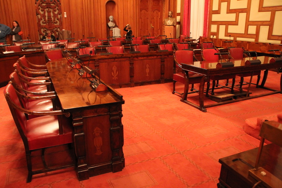 На этих фото представлен зал заседаний Городского Совета Стокгольма. Зал отделан в «старом» стиле, но с элементами предметов технического прогресса. В состав Городского Совета Стокгольма входит чуть больше ста депутатов, из которых примерно 52% женщины. Стоит отметить, что в зале предусмотрены места не только для членов Совета, но и посетителей, для которых отведено немало места на отдельном балконе.