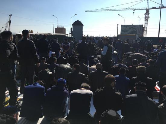 Сегодня, в пятницу 26 октября, в ингушской столице Магасе, тысячи жителей республики собрались на пятничную молитву. Двухнедельный митинг, проходивший в Магасе с четвертого по семнадцатое октября, собирал тысячи жителей республики и в те дни, пятничная молитва собирала десятки тысяч человек, что показывало единство и солидарность населения Ингушетии. Сегодня, люди как и прежде собрались на Джума, на том самом месте где планировалось построить соборную мечеть.
