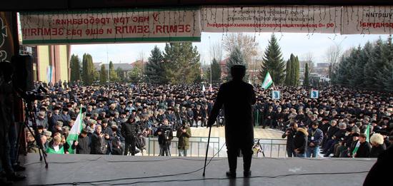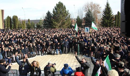 Вчера, 27 ноября, на площади перед Назрановским Домом Культуры прошел митинг. Протестный сход несогласных с Соглашением о передаче земли начался, как и планировалось в 10 часов утра, хотя люди начали приходить задолго до его официального начала. Митинг был организован общественностью Ингушетии, а заявка была подана Координационным советом молодежных организаций Республики Ингушетия. В этот же день, в Конституционном Суде РФ в Санкт-Петербурге рассматривалось обращение главы республики, недовольного вынесенным решением Конституционного суда Ингушетии. В народе и в СМИ эту попытку легализовать антинародное и противозаконное соглашение именуют не иначе как «Евкуров против народа Ингушетии». По факту это именно так. Одной из целей митинга была поддержка депутатов и адвокатов, представляющих интересы народа Ингушетии, выступавших в суде против соглашения.