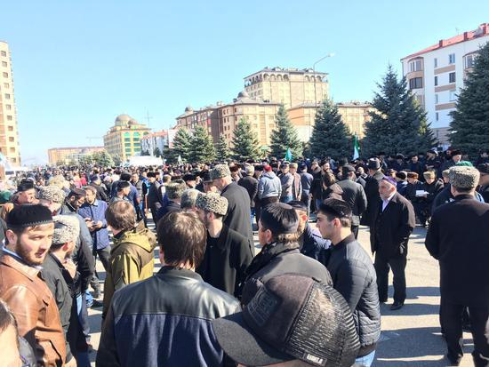 Отведенная для митинга территория, площадка перед НТРК «Ингушетия», оцеплена металлическим ограждением, установлены рамки металлоискателей. И еще одна странность, это уже параноидальная шизофрения, ведь силовики заявили о запрете проноса на митинг пластиковых бутылок с водой.