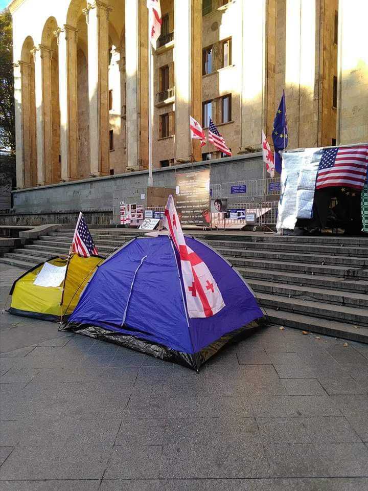 По словам Саралидзе, он получил письмо от столичной мэрии с подписью мэра Кахи Каладзе. В нем говорилось, что протестующие, которые остаются у парламента уже два месяца, с 7 ноября должны перейти в другое место. Свою просьбу мэрия объясняет тем, что на проспекте Шота Руставели начнется монтаж новогодней иллюминации и елки, а протестующие будут мешать работам.