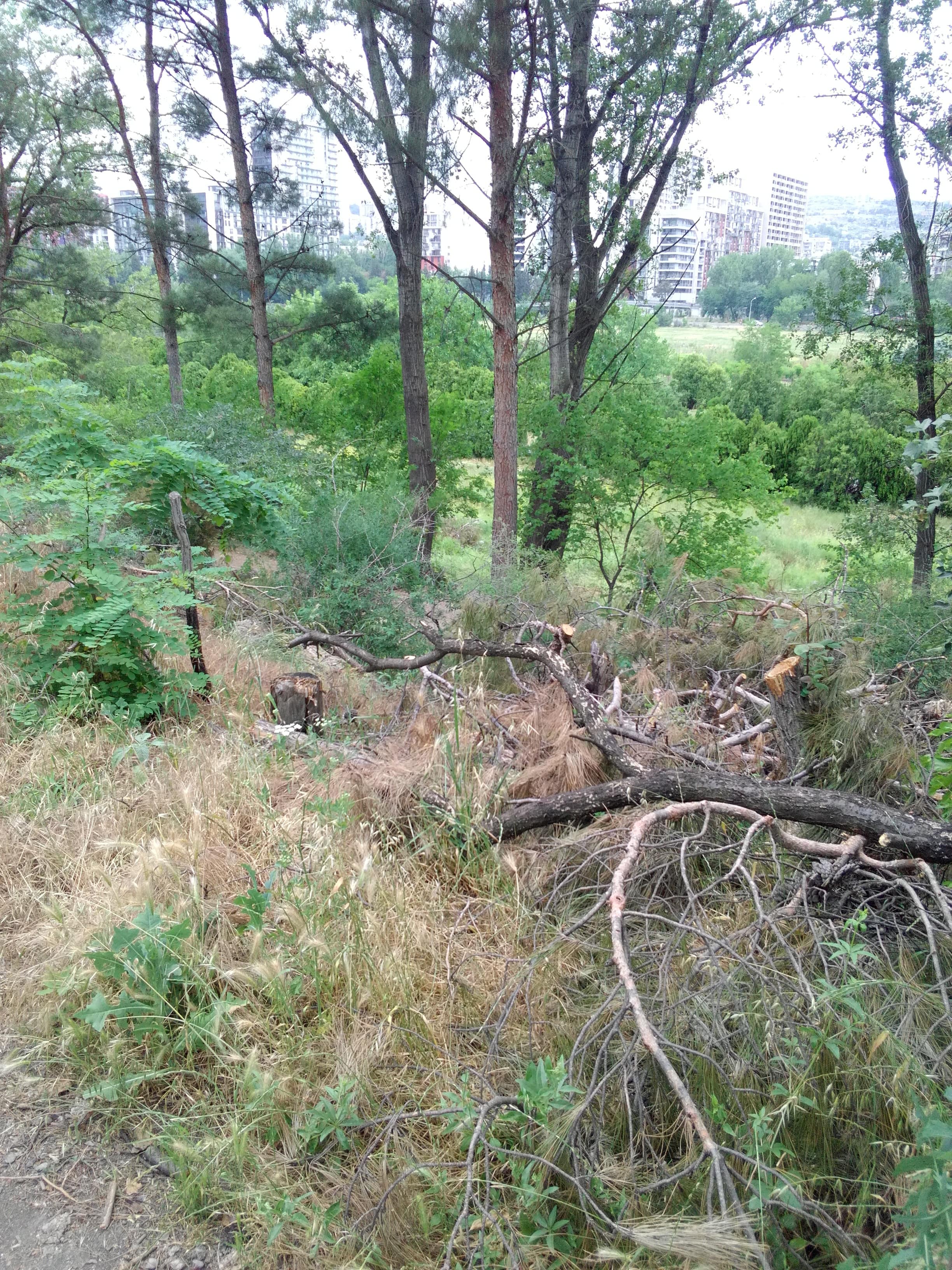 Где-то месяц назад, был на территории бывшего ипподрома в районе Сабуртало. Этот зеленый островок - имхо, "легкие" столицы. Так вот - тогда, там пилили старые, сухие деревья. Сегодня, просто, ради интереса, вновь зашел на "ипподром", и, прошелся по роще, где так любят гулять сабурталинцы. Вот что я увидел!