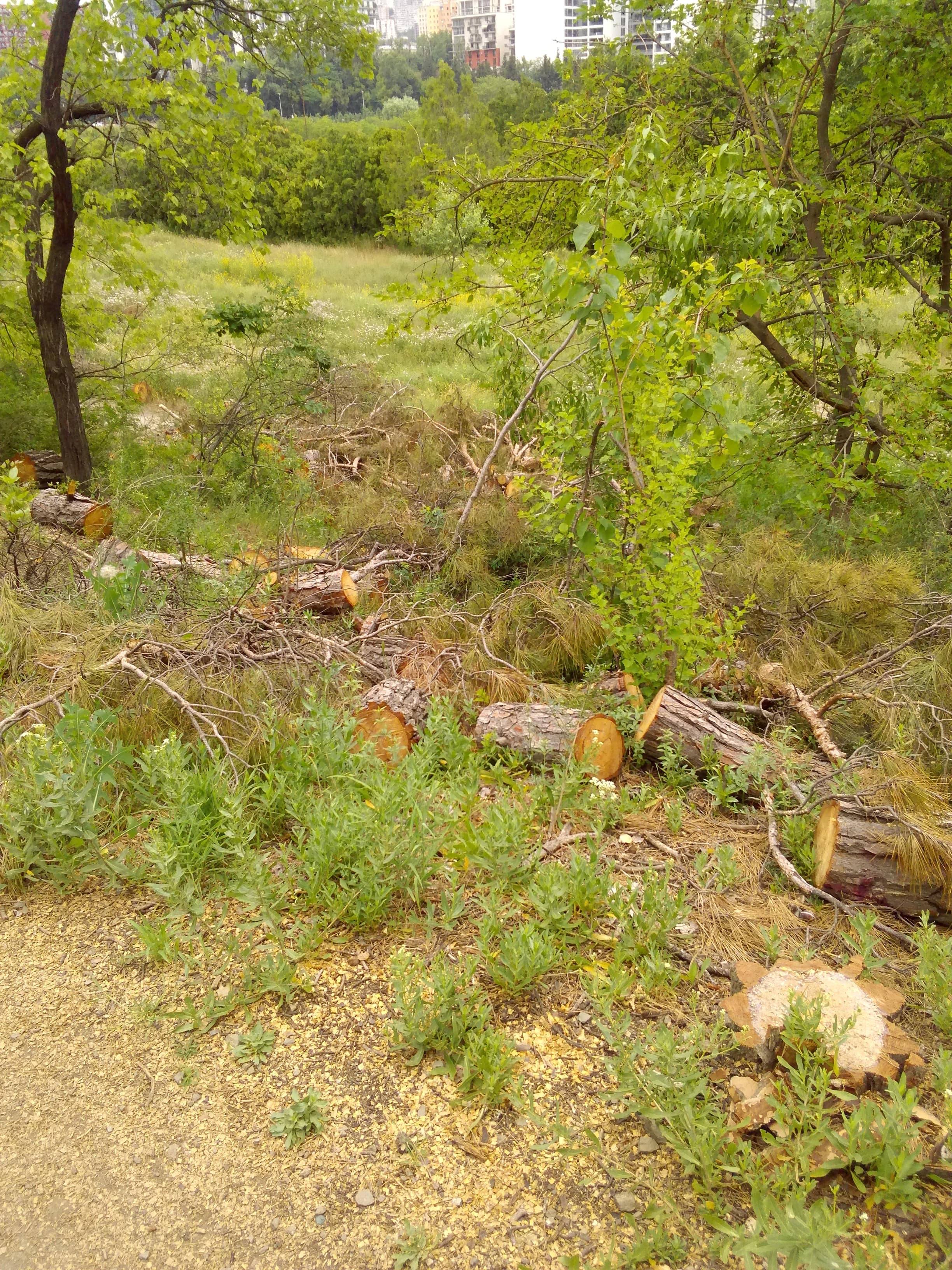 Почему так долго не убирают срубленные сухие деревья с "ипподрома"? Ждут пожара? Много фото