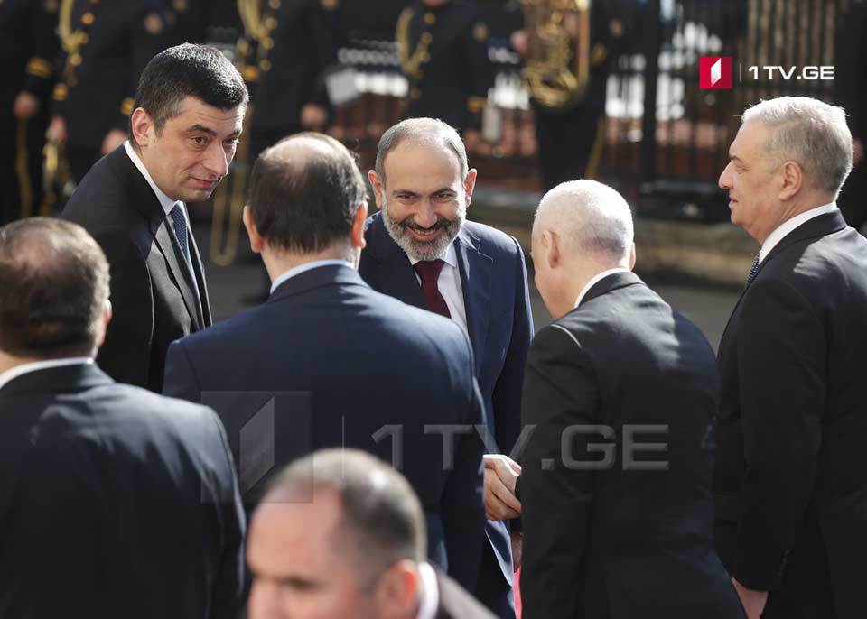 Из видеоматериала Первого ТВ Грузии. Премьер- министр Грузии Георгий Гахария и Армении - Никол Пашинян