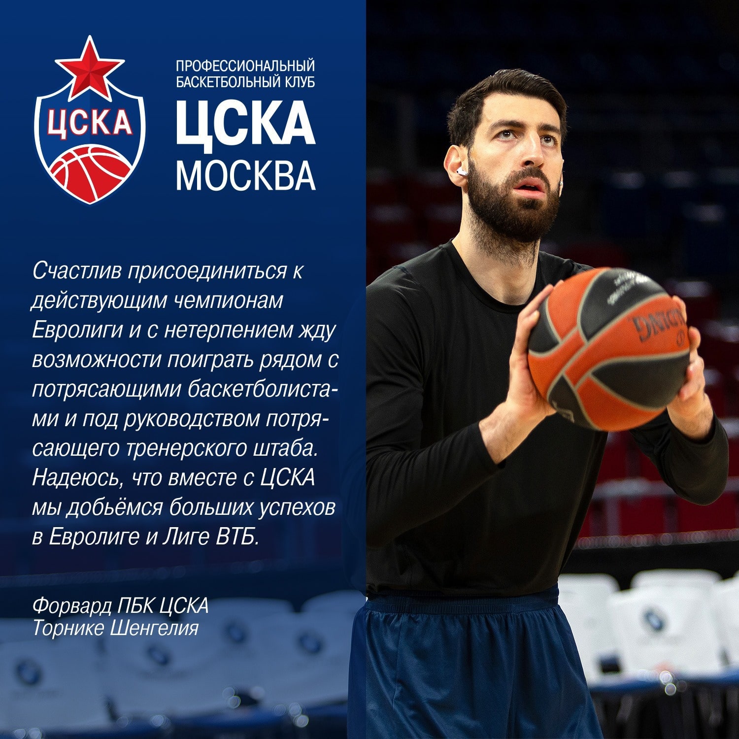 Грузинский форвард Торнике Шенгелия  (28 лет, 206 см) официально перешел в  ЦСКА