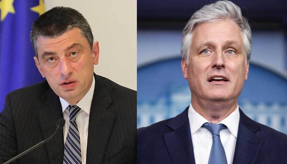 Источник: https://1tv.ge/ru/news/sostojalsja-telefonnyj-razgovor-mezhdu-premer-ministrom-gruzii-i-sovetnikom-prezidenta-ssha-po-nacionalnoj-bezopasnosti/ Георгиий Гахария и Роберт О’Брайен,
