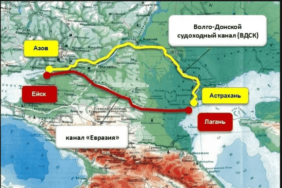 Существующий и альтернативный путь из Каспия в Азово-Черноморский бассейн...Материал от 6 ноября 2018: Канал "Евразия" из Каспийского в Черное море - реальность? Даже Манилов вздрогнул от удивления...
