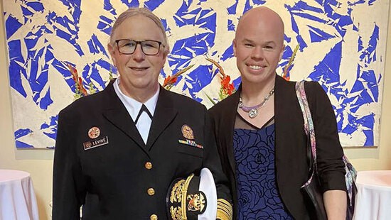 Архив. Фото первого трансгендерного адмирала США Рейчел Левин, которая посетила вечер в посольстве Франции в честь годовщины взятия Бастилии. Уточнялось, что рядом с адмиралом стоит заместитель помощника министра ядерной энергетики США Сэм Бринтон, называющий себя "небинарная гендерфлюидная персона".