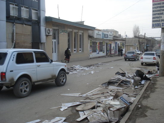 Вчера писал о взрыве в Буйнакске. Выкладываю фото с места события. Оказалось, что кто-то подорвал вход в магазин женской одежды "Эрнике". Может ошибаюсь, но говорили, что это самый дорогой магазин в городе, торгующий одеждой. Кто, зачем и почему подорвал - оставляют массу вопросов. Если до этого взрывы магазинов, торгующих спиртным объяснялись действиями "лесных братьев", то этот взрыв не знаю как объяснить. Видимо, кто-то, под общий шумок, устанавливает (предлагает) свою "крышу" и "налог".