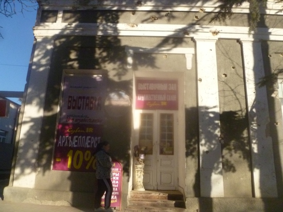 А вот Художественный салон и магазин"Сувенир Ир" совмещенный с ним. По-осетински написано только «обвал цен» типа типа Sale%! Название правда только на русском, но и сувениры то тоже в основном для приезжих. Хотя приезжающие в Цхинвал, осетинский еще помнить должны.