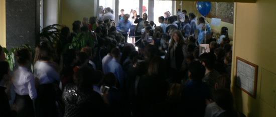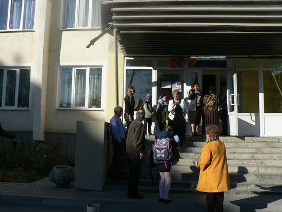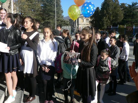 Основателя и бессменного директора, руководителя Лицея Искусств, Лаврентия Касоева чествовали сегодня, прямо у входа в Лицей ровно в 8.55, когла он по обыкновению приезжает в школу. Чествовали, поздравляли обнимали учителя, ученики а также их родители, сотрудники детской комнаты милиции и министр просвящения. Пришли и коллеги и дети из других школ. А Лаврентий Павлович все просил, "Спасибо огромное... Ну всё, пустите уже, у меня занятия. Ауадзут мае уроктаем"