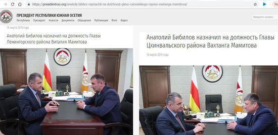 Сегодня, президент Бибилов, назначил сразу двух глав районных администраций, двух районов РЮО - Цхинвалского и Ленингорского. И назначил он, возглавлять эти районы, двух однофамильцев -  Виталия и Вахтанга Мамитовых, соответственно. Если учесть, что на прошлой неделе, а имено 14 -го числа, был назначен новый глава и Дзауского района, им стал, вместо отправленного в отставку Урузмага Макоева, Андрей Джиоев, то можно сказать, что Президент обновил районные администрации. «Нетронутым», остался лишь Знаурский район.