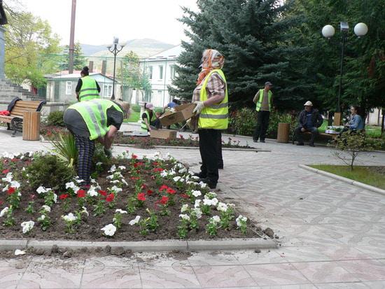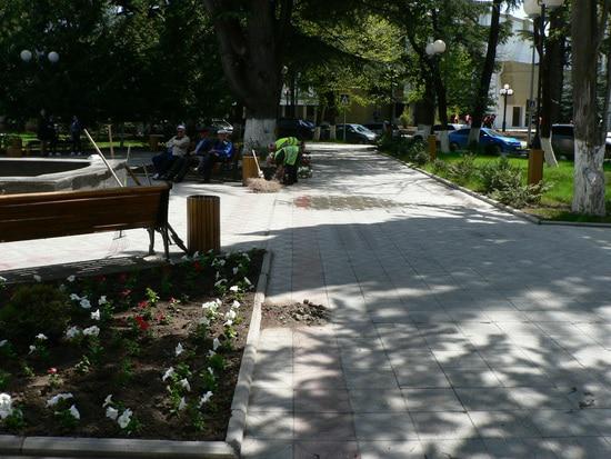 Для этого, предварительно, в сквере вскопали клумбы. А вот, для чего перекапывают каждый год газоны в городе, я не могу понять, и не смог добиться объяснения этим действиям  у  городских чиновников. Там же уже растет трава, ее коси регулярно  триммером,  и получается прекрасный газон. А его перекапывают и получается уродливо и грязевые -земляные потоки во время дождей.
