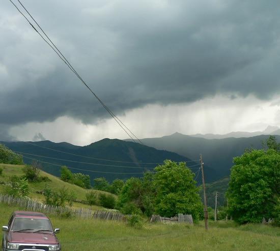 Уже стало как бы  принятым, удивляться погоде. И вот я тоже не буду отставать от тренда. Я с детства в этих местах, в селе Кроз Джавского района, и такое явление, конечно, имело место быть, но в это начало лета - особенно часто. Дождь накрывает не всё Джавское ущелье, как раньше, а  полосами, по частям, сначала например  левые боковые ужелья Борджнис и Мзиугом, потом идет направо в  Чимас, ну и так далее. И звоня друг другу, теперь местные жители не с «подколом» спрашивают,  а на самом деле интересуются - "А у вас тоже дождь?". И еще шутят, что и люди, и природа с ума по-сходили, теперь и дождь на град похож стал - идет местами.