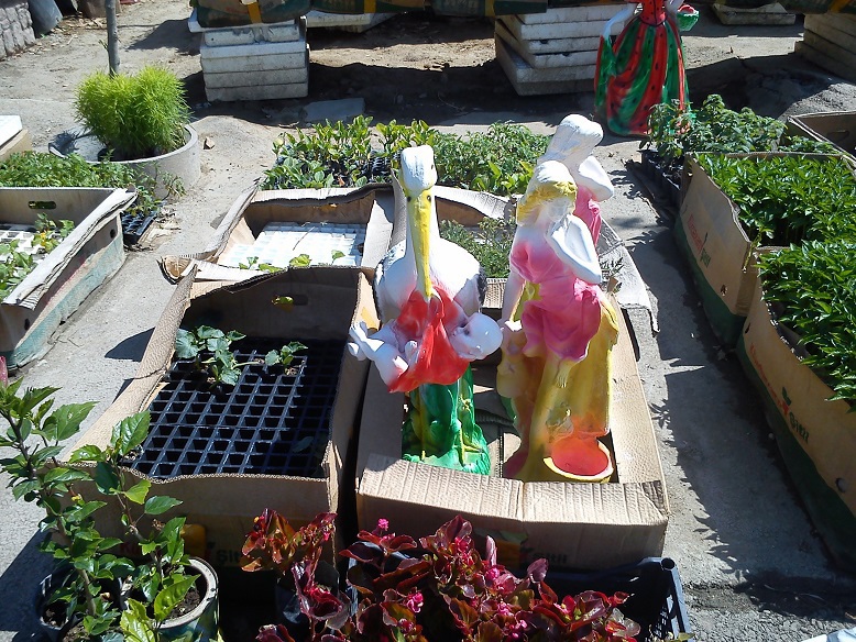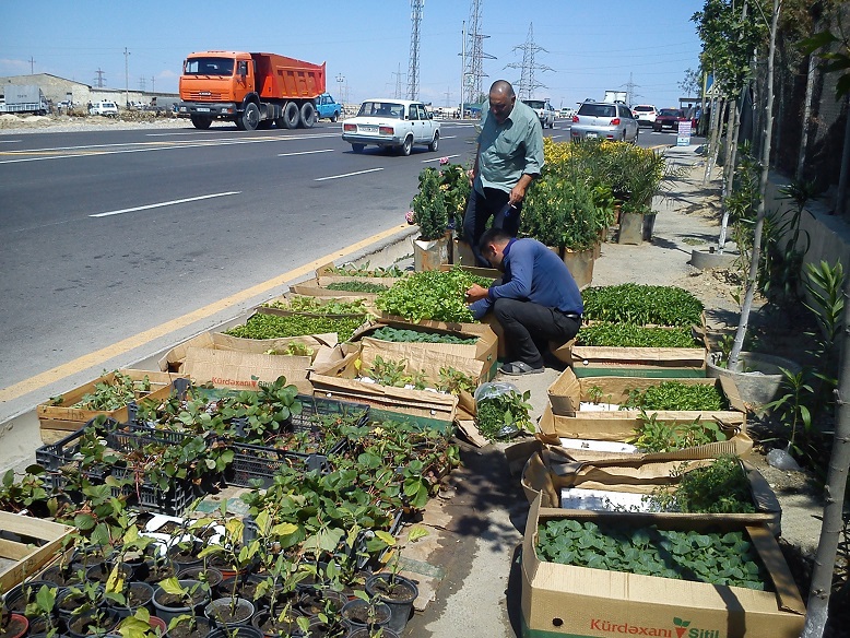 Покупали с женой саженцы цветов, помидоров, огурцов, кабачков и пр. в придорожном магазинчике, торгующем только саженцами. Заметил фирменную картонную коробку с надписью "Кюрдаханинский питомник" - это в поселке Кюрдаханы, значит. Молодцы, создали понимая, что если много дач и люди покупают земельные участки значит обязательно будет потребность в саженцах. Тут же на продажу выставлены скульптурки, скамейки, беседки для дач, вообще все что может пригодиться дачникам - удобрения и плодородная земля, торф.