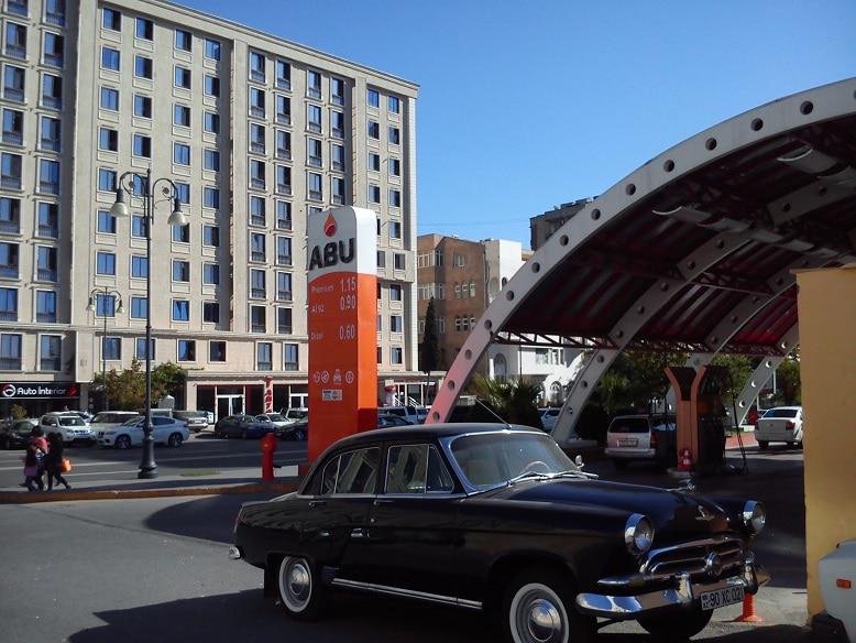 Дальше по пути автозаправка с раритетной "Волгой", для привлечения внимания