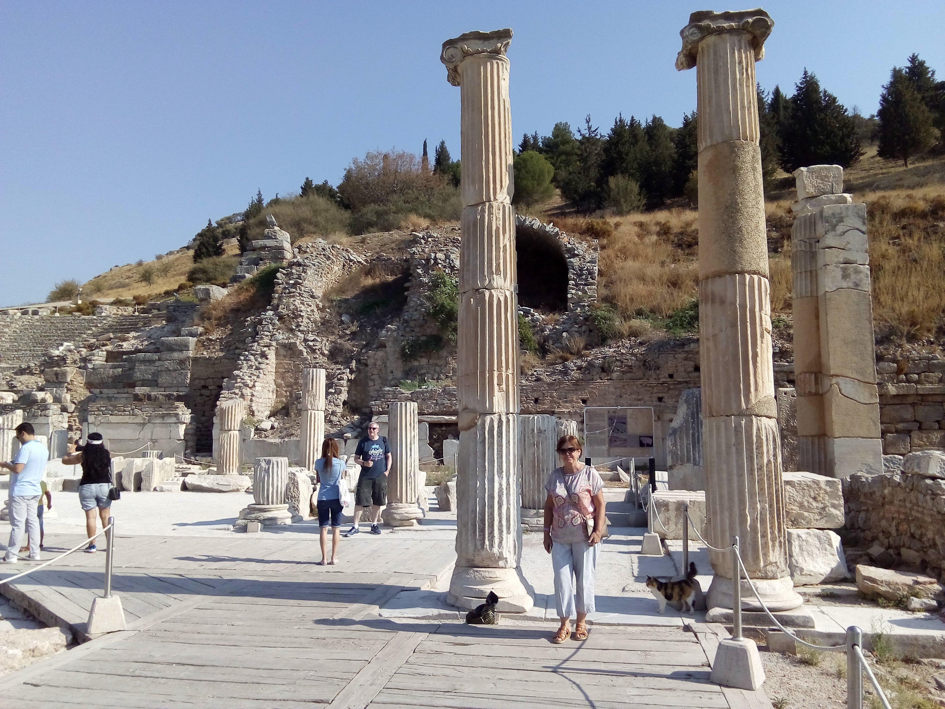 Этот театр, а он был закрытый , с крышей и помещениями под сценой работал когда не было римской империи с ее колизеем. А сейчас в Эфесе живут только кошки.