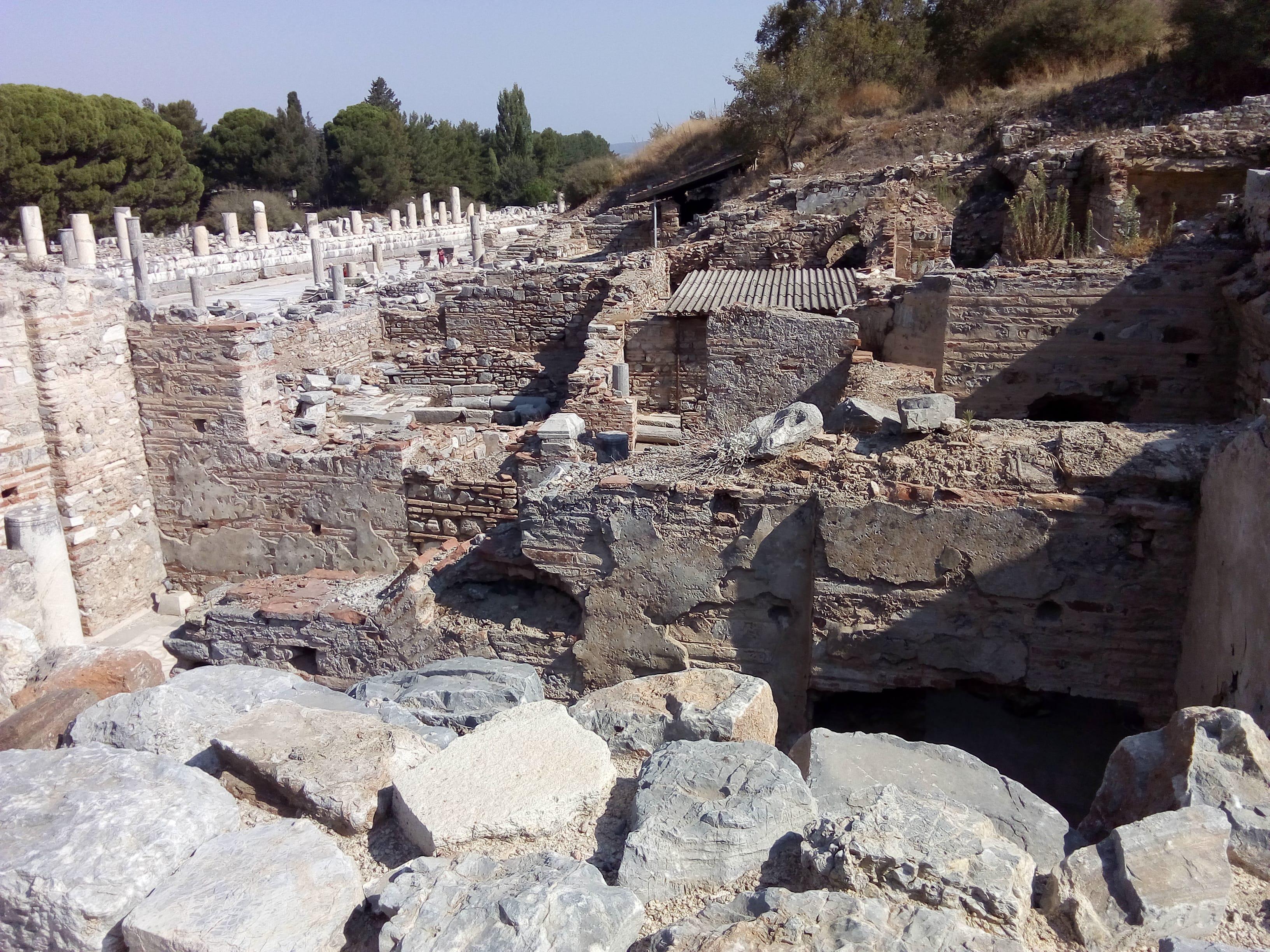 Город Эфес, первое тысячелетие до нашей эры. 25 тысяч жителей. Виднв места гимнастических занятий, рынок, дворец императора , бани, общие туалеты, театр, площади, улицы , жилые кварталы... Охриневате ельно очутиться 20 веков назад, ходить по тем же моаморным дорогам, читать их надписи, имена владельцев, представлять каким это здание было до двух землятресений... Времени мало в каждый дом не зайдешь а хочется остаться на ночь чтобы ушли туристы а я бы заснул на каменной скамье на которой сохранилась выемка протёртая задами тех кто жил когда ничего теперешнего не было, а они представляли свой мир совершенным.