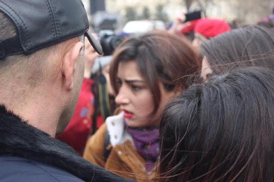 Бакинская власть запретила группе женщин провести шествие, которое женщины хотели посвятить призыву бороться с насилием мужчин. Почему запрет? Не знаю. Понятно, что вреда от разгона демонстранток мы получили больше, чем пользы от бессмысленного запрета. Вряд ли запретители не знали, что разгон мирной демострации будет использован потом против Азербайджана. Ноу-хау вчерашнего события в том, что полиция блокировала выход женщин на планируемый маршрут демонстрации, а кинулись их бить... уборщицы. Одна боевая уборщица попалась на глаза фотокорреспонденту, см. последний снимок. Фотографировала и выставила в сеть журналист Гюльназ Гамбарли.