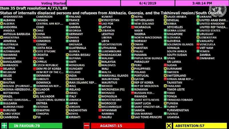 Генассамблея ООН приняла антироссийскую резолюцию о статусе беженцев из Южной Осетии и Абхазии. Проект резолюции ежегодно предлагается Грузией и принимается большинством голосов. То, что проект предлагается Грузией не столь важно, так как при голосовании страны решают кому отдать голос исходя из их политического отношения к путинской России. Почему я так считаю? Потому, что с Грузией реальные межгосударственные отношения имеют не все участники голосования, предположим, государство Санта Лючия - что у нее общего с Грузией? Ничего. Или почему Катар голосовал против Грузии, разве грузины захватывали столицу Доху? Нет. Все дело в России и ее отношений со странами.