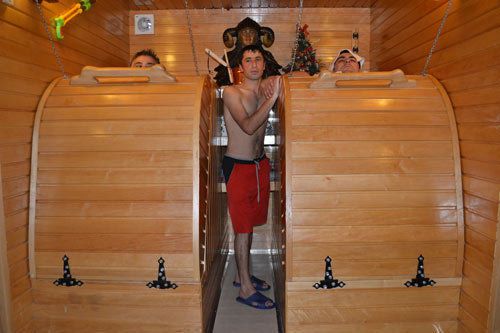 Молодец владелец. Захотел - сделал. А нравится кому или не нравится - не наша забота. Сейчас это креативом называется, когда из нуля (старой советской бани) создают новый продукт культурного врепяпровождения, оригинальный и смешной одновременно