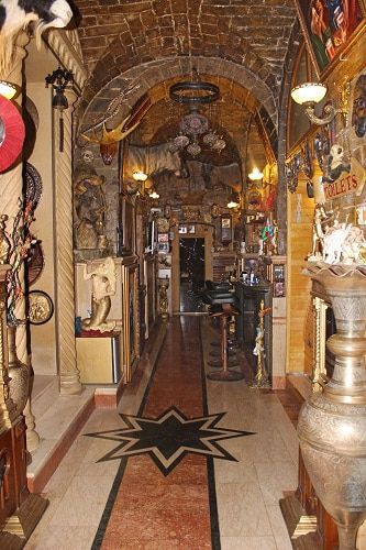 Внутреннее убранство не я фотографировал. Взял из и-та. Часто прохожу мимо выставленных на тротуаре скульптур. Это же надо владельцу быть таким увлеченным, что тратит столько денег на кич-оформление.