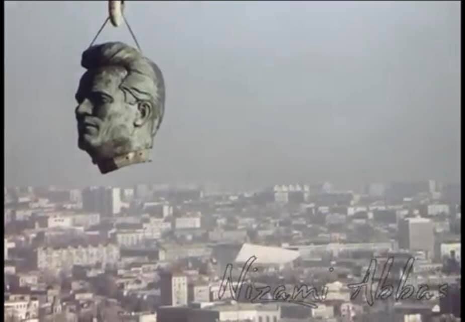 На втором снимке фрагмент разрушения скульптуры Сергею Мирон оглы Кирову на самой высшей точке Баку. Лично наблюдали с другом Гусейном, погрузившись в транс от участия в разрушении мифа половины нашей жизни.