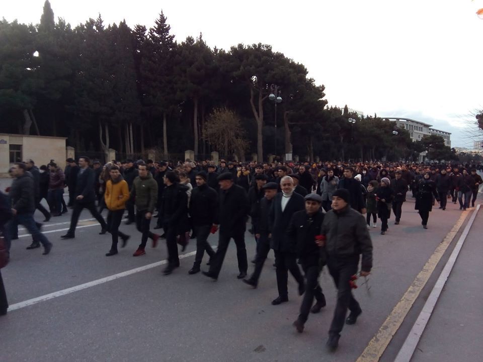 А сегодня, весь день, несмотря на опустившийся утром очень сильный по бакинским меркам холод, я видел нескончаемую массу людей в черном, с флагами и гвоздиками, идущих в Аллею Шехидов. Никто не заставляет, добровольно, с детьми, семейно, все возрасты и национальности. Не на митинг, не за подарок, пешком, отстояв в очереди и бегом, люди до темноты проходили два километра пешего пути до Аллеи. Прошло 30 лет, а единство народа каждые 20 Января не только не слабеет, а становится сильнее. В толпе идущих уже много тех, кто родился после 1990 года или был тогда несмышленышем. А ведь народ шел к Аллее в течение трех дней до сегодняшнего, чтобы не стоять в очереди, и много приезжало в автобусах организованных групп школьников.