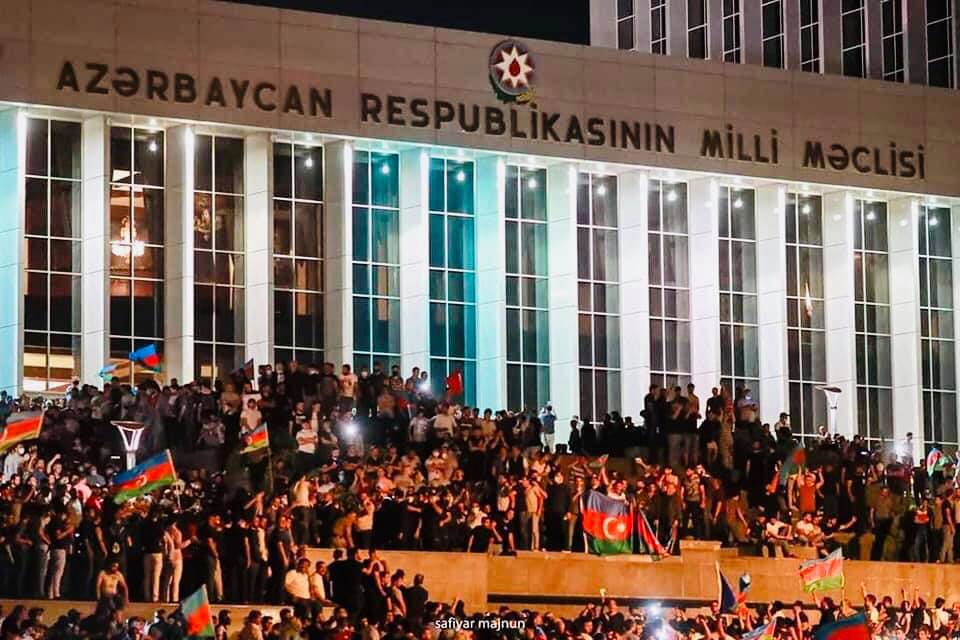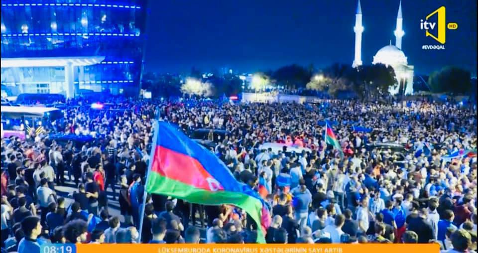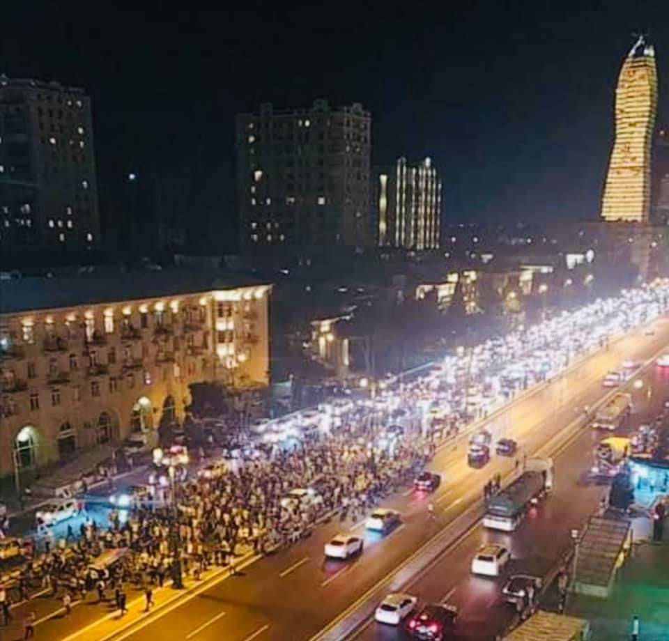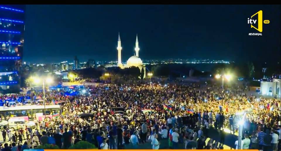 Дальше показываю ночной митинг. Такой масштабный в последний раз был когда свергали Муталлибова. Цель митингующих - требует от власти настоящей масштабной войны. Впечатляет. У нас многие говорили, что народ спит и никак не проснется. А я говорил что нет вечно спящих. Все когда нибудь обязательно наступает. Мощное требование и активность народа не может не пугать власть, народное движение вдруг стало фактором.