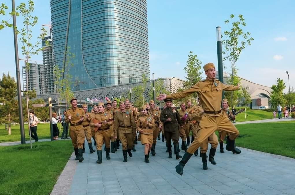 День победы в Узбекистане. С балалайкой. Молодые узбеки изображают победителей. Балайка-шоу в таком виде может вызывать отторжение