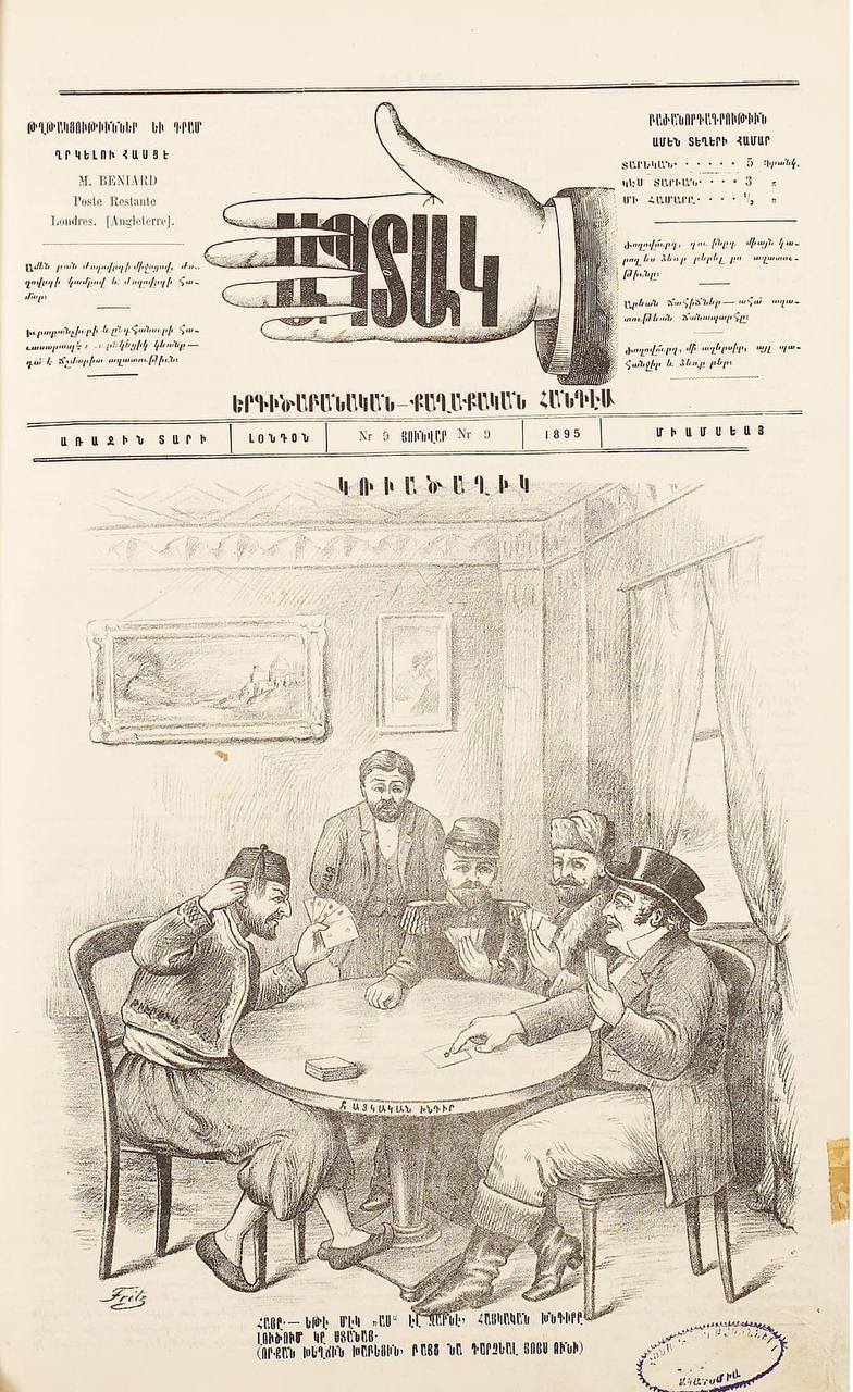 Так было всегда. Показываю номер армянского журнала "Аптак". Армянский вопрос 1895 год.