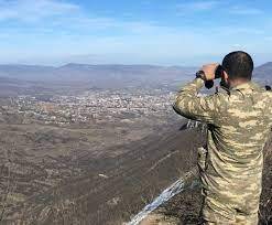 на фото - азербайджанский офицер в Шуше наблюдает Ханкенди