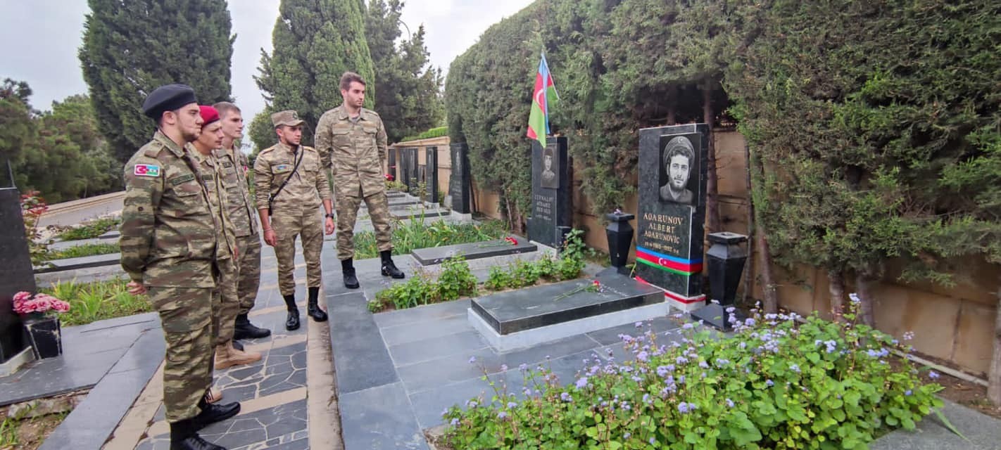 Вчера пятерка участников последней гарабахской войны посетила в Баку Аллею шехидов, могилу героя первой карабахской войны Юрия Ковалева (его имени есть школа в Баку). Ребята поделились в ФБ фотографиями.