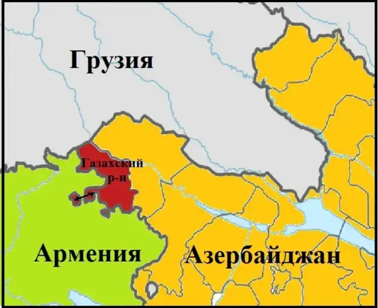 на фото карта Газахского района с анклавами внутри Армении.