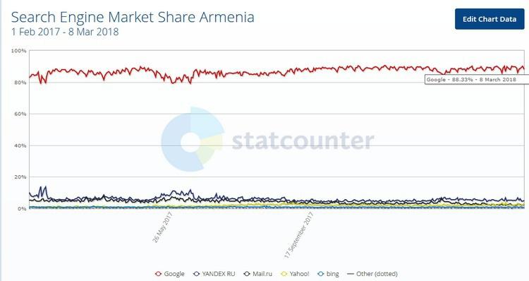 Такой график можно увидеть по ссылке: http://gs.statcounter.com/search-engine-market-share/all/armenia/#daily-20170201-20180308