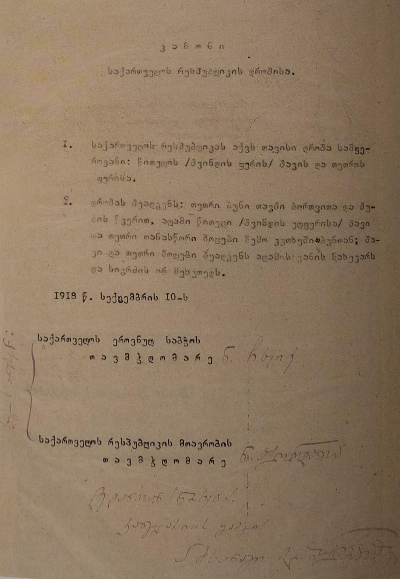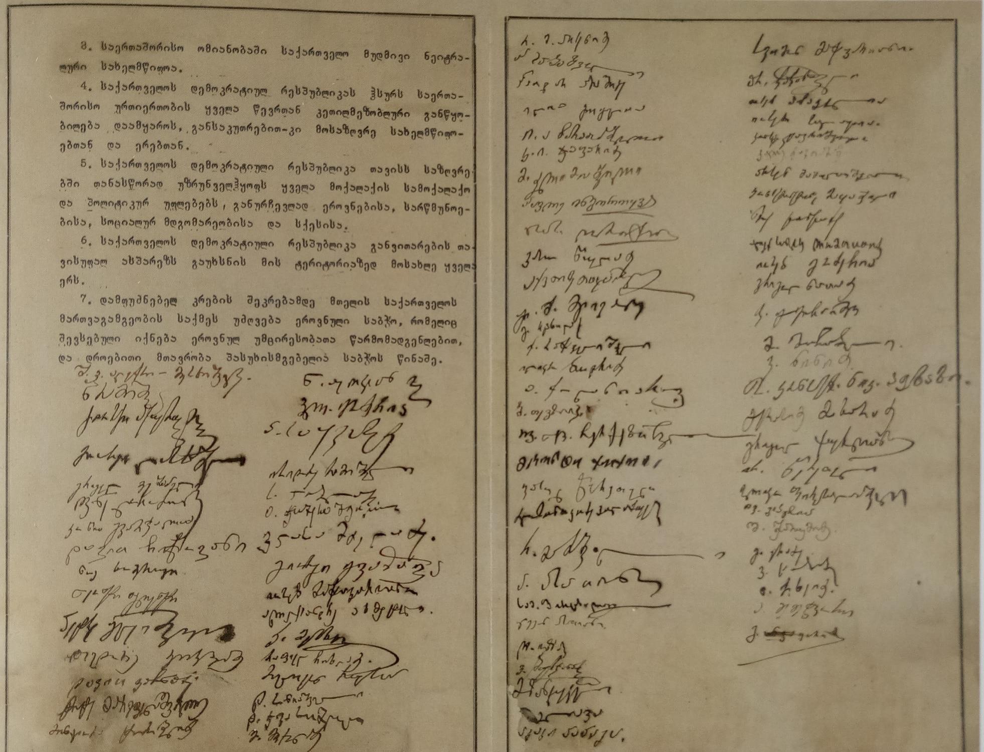 1.1. Акт независимости Грузии. Документ принадлежит парламенту Грузии.