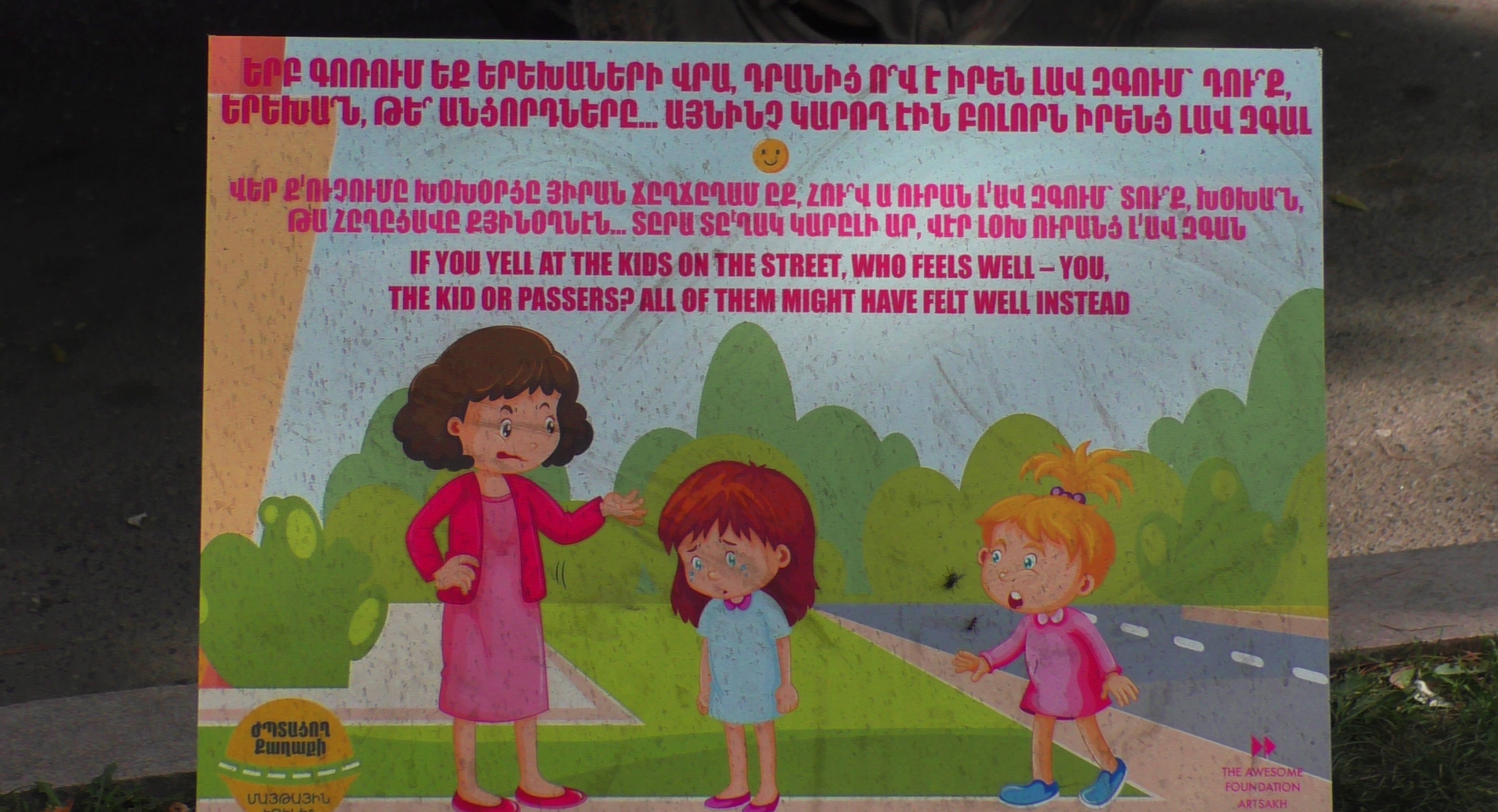 Гуляя по Степанакерту, обратил внимание на новые таблички с социальной рекламой, которые установили рядом с магазином "Книги".