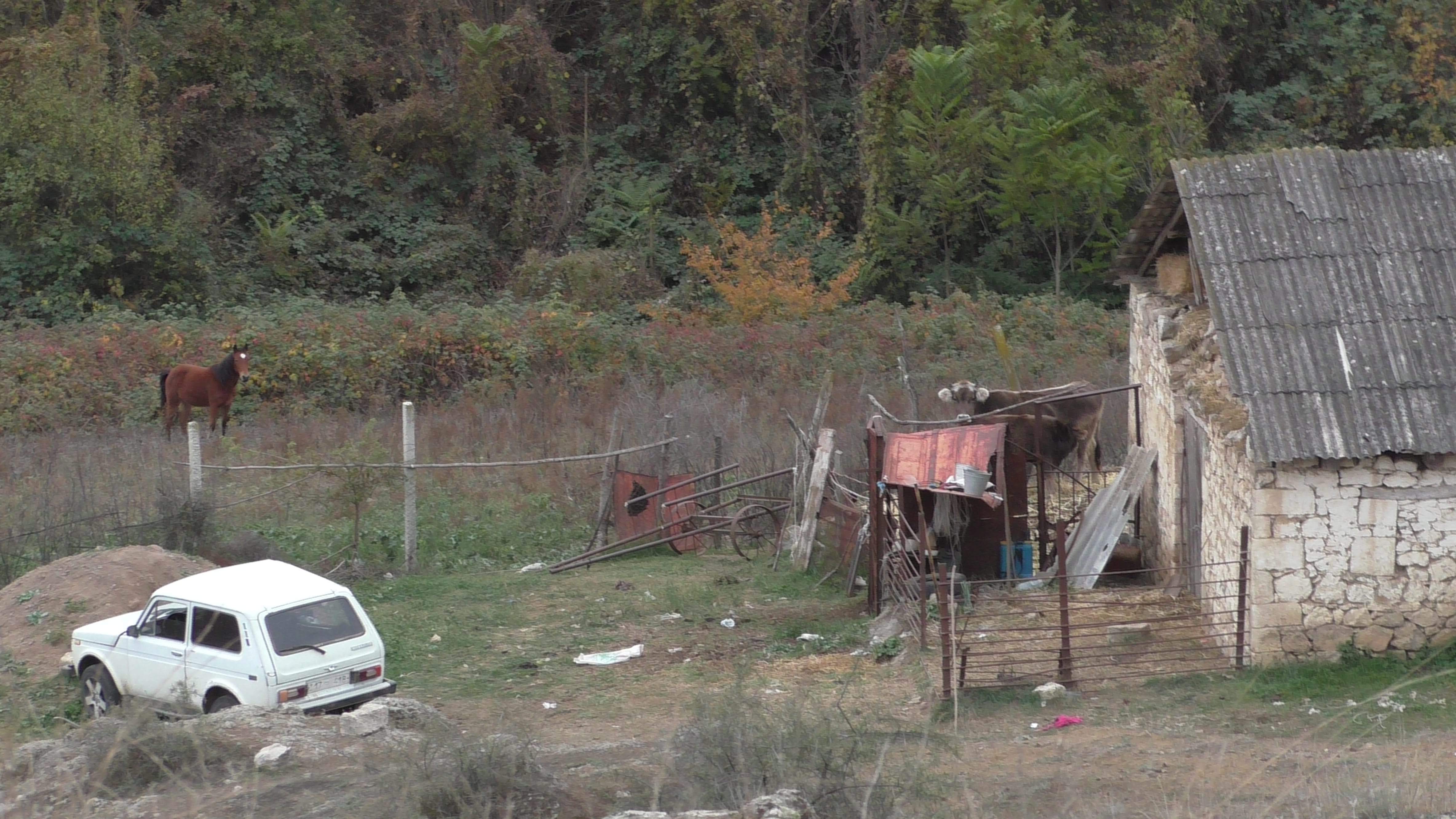 Может кто скажет, что это сделано для того, чтобы коровы не заходили внутрь и не гадили, так там щеколда есть (уходя мы его заперли на щеколду), люди смогут открыть, а вот коровы не смогут. А запирать на замок это присваивание. Там нечего красть, значит и замок не нужен.