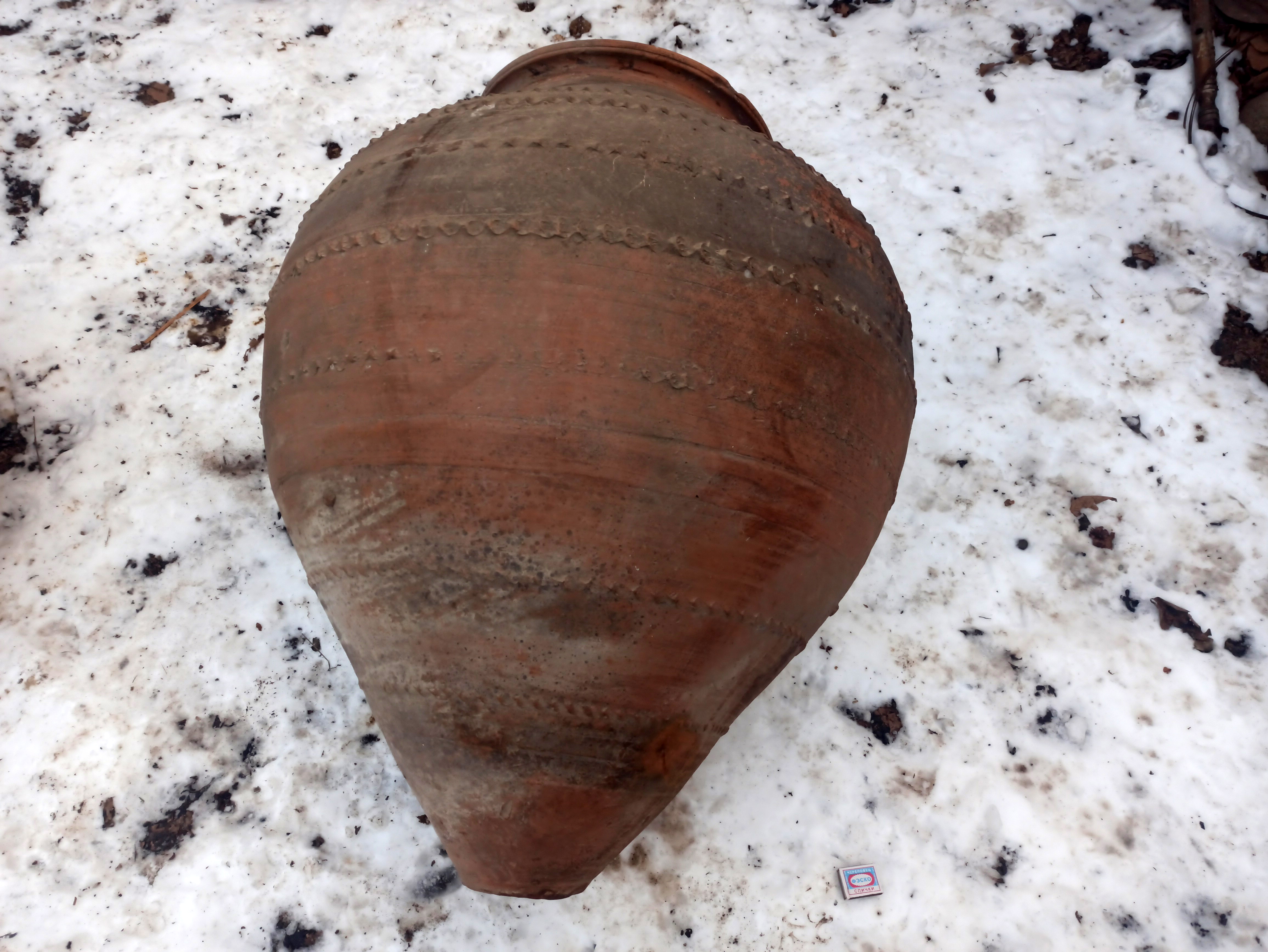 Большой карас для хранения вина из села Кхарце вместимостью в 200 литров. Принадлежал роду Супанц. Два караса рядом стояли, два под землей, один мне они подарили. Хорошо, что по пути не разбил.