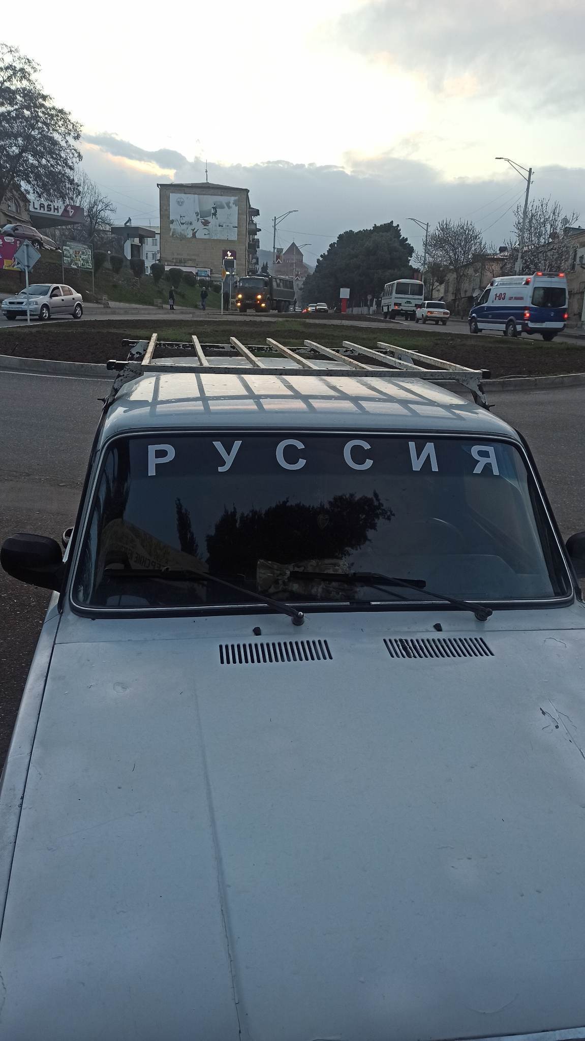 Но в месяц выдают чек на 10 литров бензина на машину, а поскольку по паспорту прописка у меня шушинская, а чек только по паспорту, зашел за чеком в админстрацию Шушинского района, которая на сегодня размещается в бывшем офисе коммунистической партии Нагорного Карабаха.