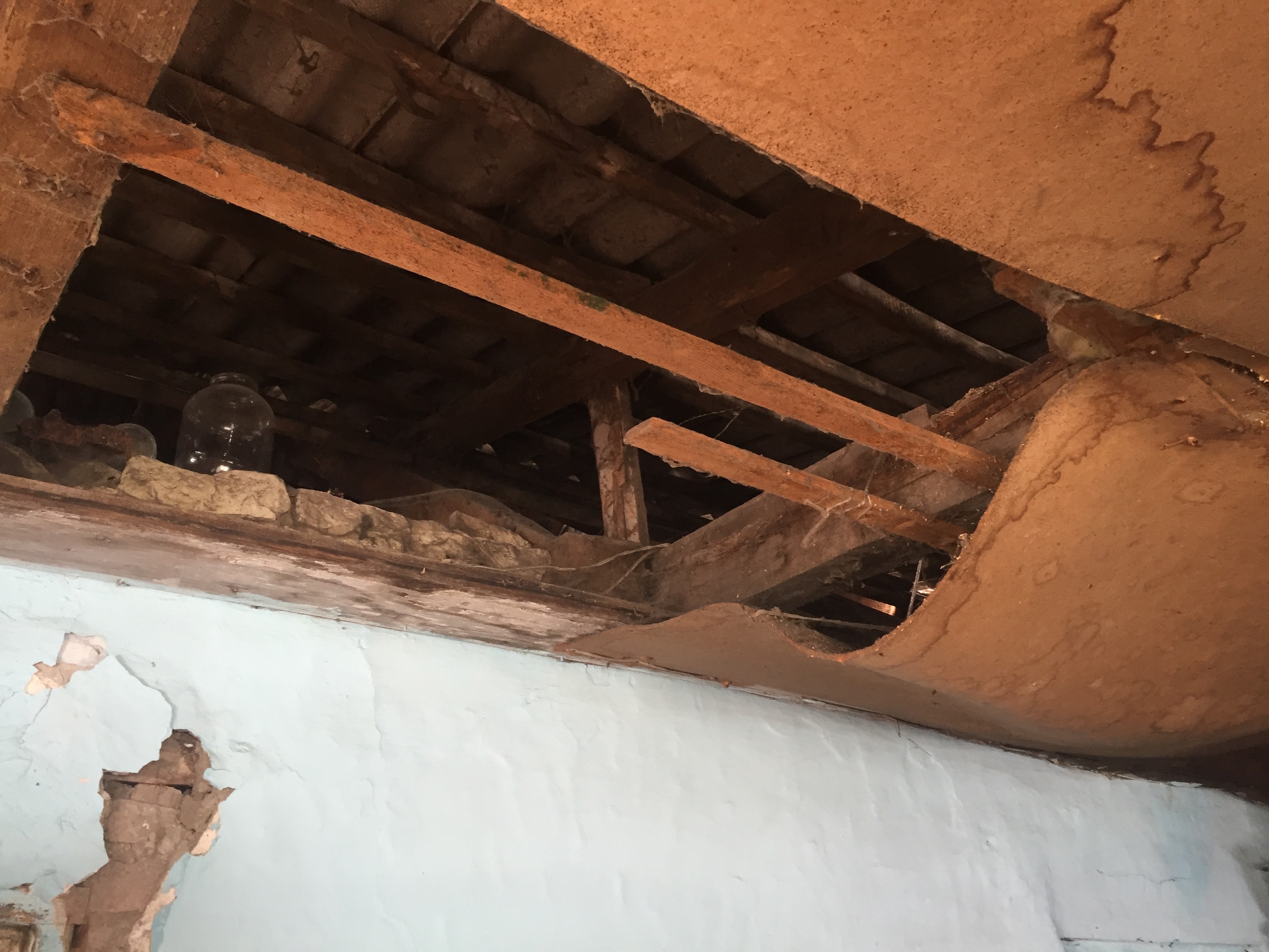 Бороться с грибком какими-либо средствами - совершенно бесполезно. Местные объяснили, что причина в том, что дом построен без фундамента. Залили немного бетона, но назвать это фундаментом нельзя. А наверху  под крышей нет перекрытий, утепления, а есть только обрешетка, к которой прибит гипсокартон. В доме едкий запах сырости и плесени.