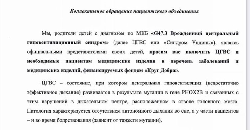 Медицинское название болезни - «Врожденный центральный гиповентиляционный синдром» (ВЦГС). Он связан с недостаточностью дыхания во время сна. То есть, во сне больной нуждается в искусственной вентиляции легких. В противном случае он может умереть из-за недостатка кислорода. Болезнь  связана с мутацией гена. Заболевание может проявиться уже в первые часы жизни ребенка.