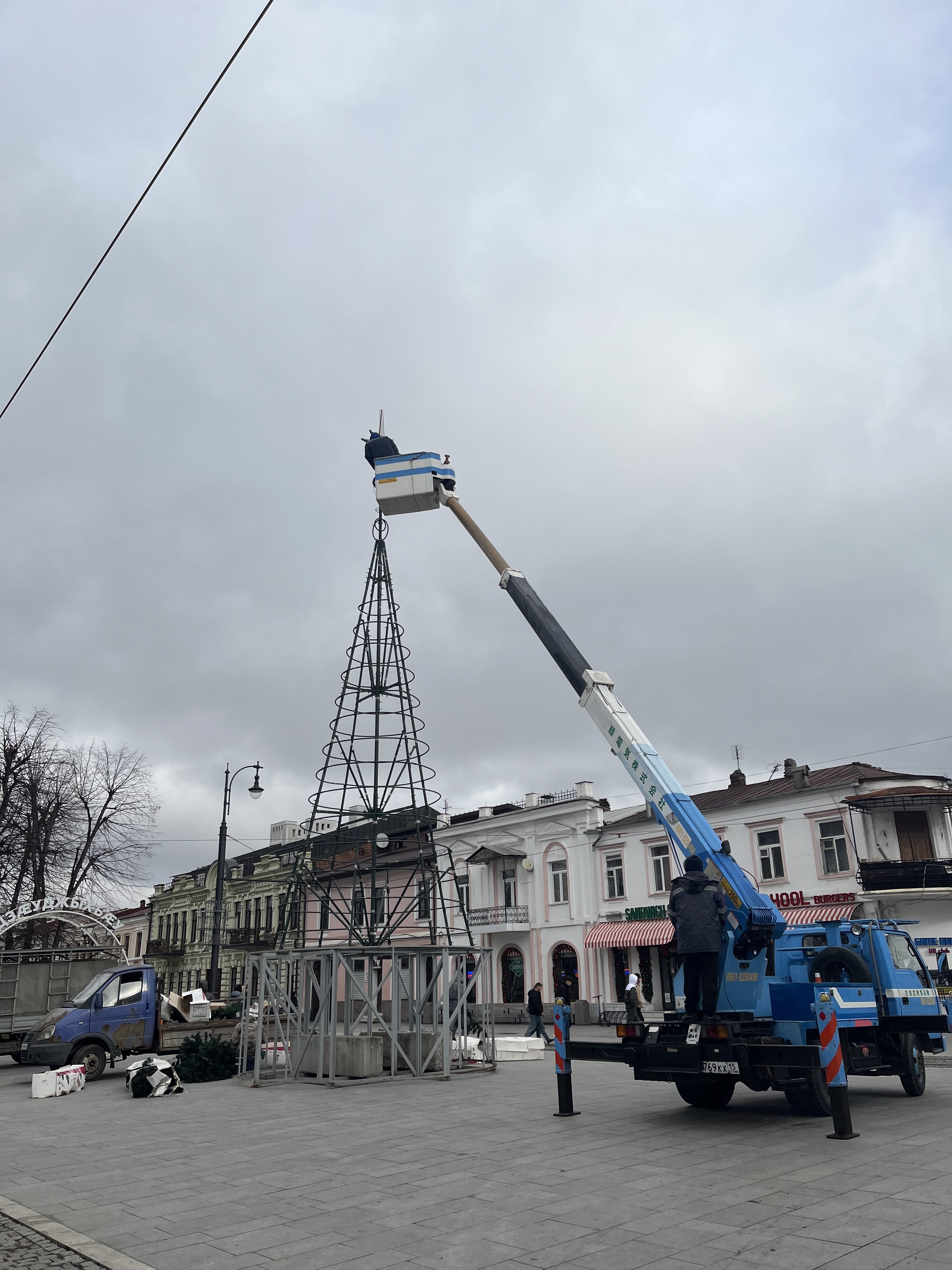 Во Владикавказе устанавливают ёлку