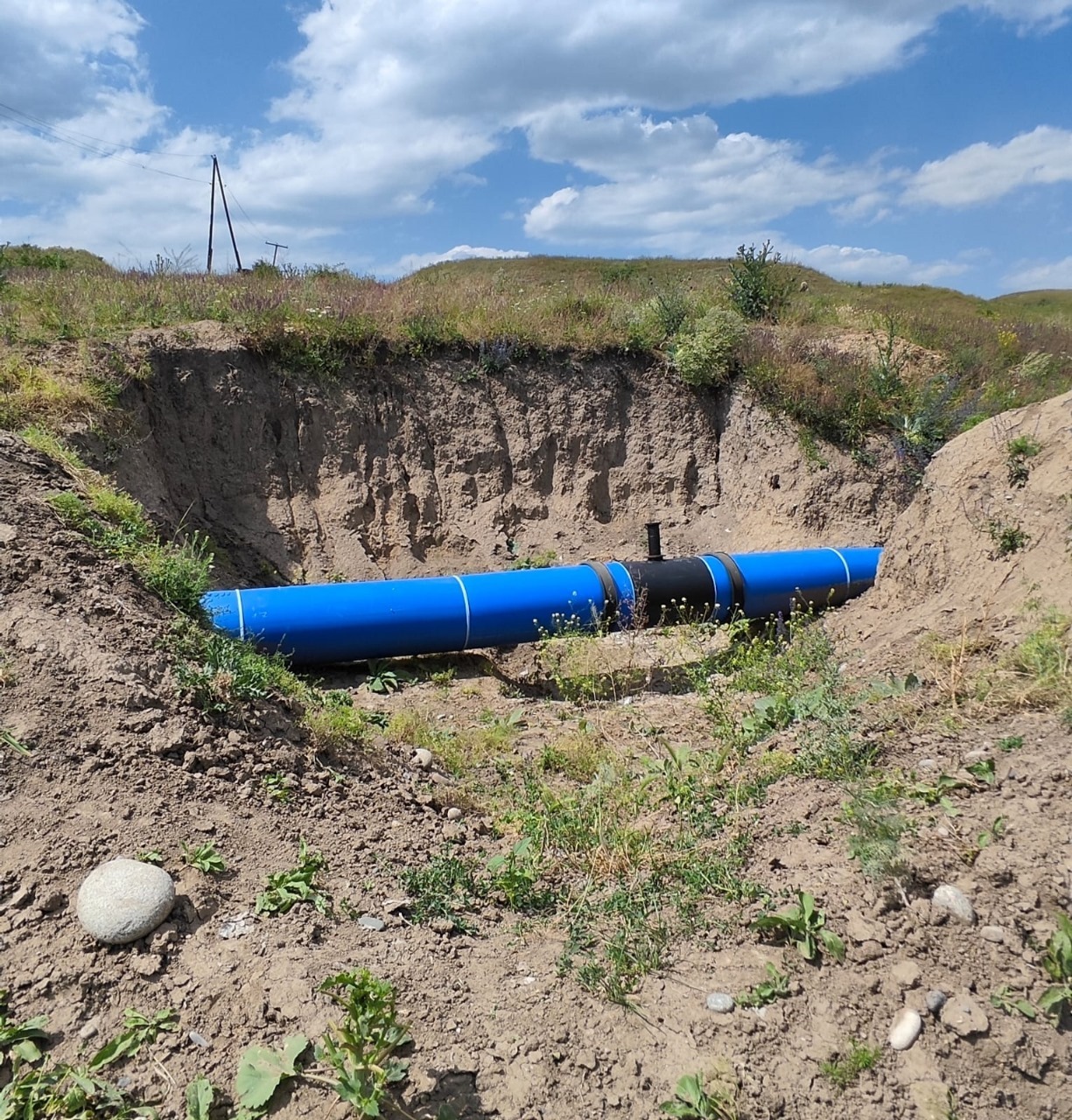 Проект нужный и важный, однако в границах строительства водопровода, либо в непосредственной близости, оказались древние курганы -  археологические объекты регионального и федерального значения, которые в результате строительных работ частично разрушены. В местах, где прошлась тяжелая техника, валяются черепки керамической посуды и другие артефакты.