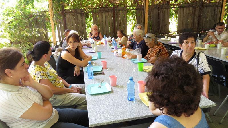 Работники офиса «Анганак» и пенсионеры отдыхают и ждут обеда.