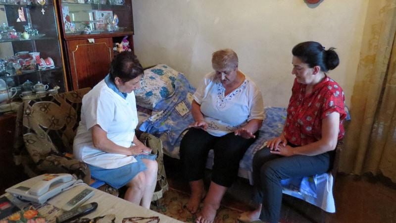 Две соцработницы, четыре участковые медсестры, одна медсестра работающая в офисе, сотрудница в Шуши, врач, бухгалтер, координатор и директор программы, вот и весь штат нашего проекта – всего 12 человек» - резюмировала Гоар Ованисян.