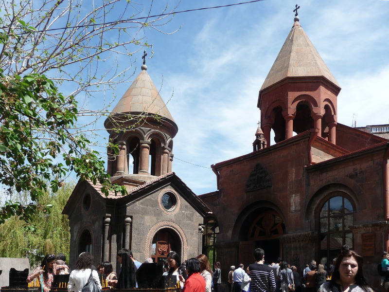 Верующие у церкви Сурб Зоравор в ожидании пасхальной службы.