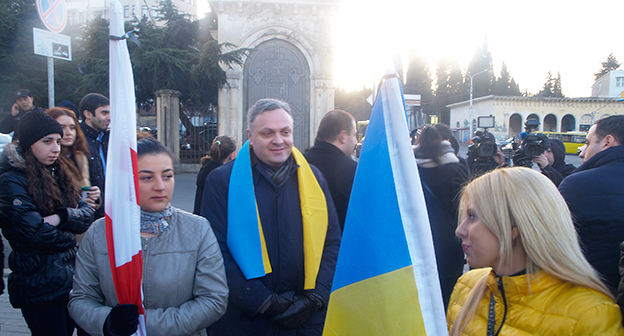 Траурная церемония в память о погибших под Волновахой. Украинское посольство в Грузии. 14 января