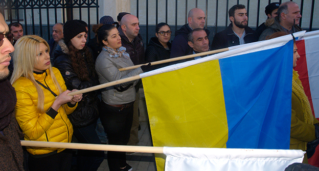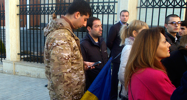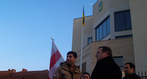 Траурная церемония в память о погибших под Волновахой. Украинское посольство в Грузии. 14 января 2015 г. Фоторепортаж корреспондента "Кавказского узла" Беслана Кмузова