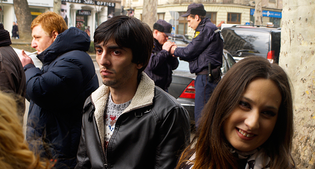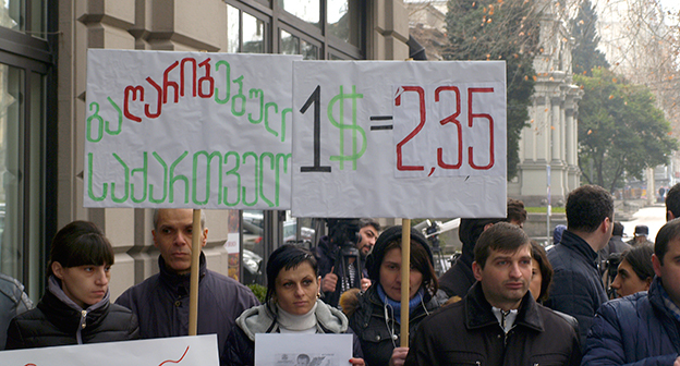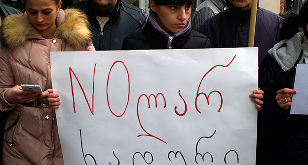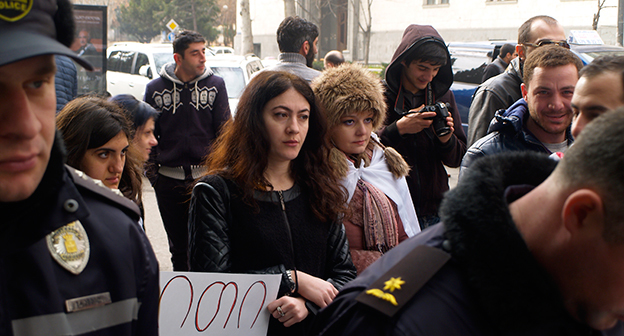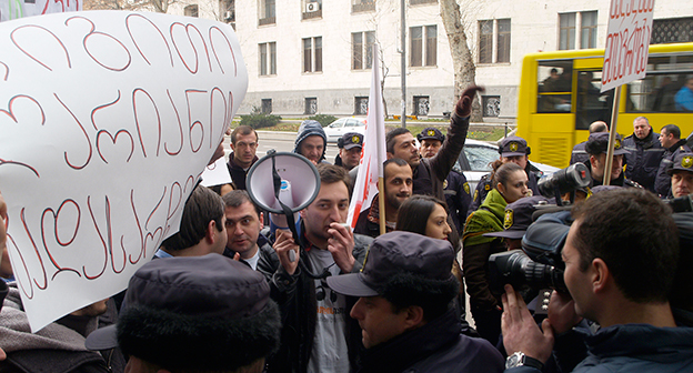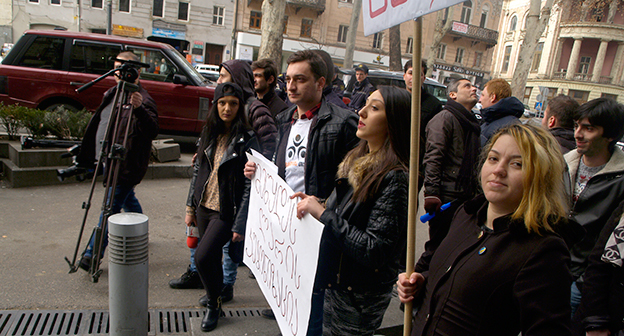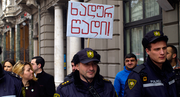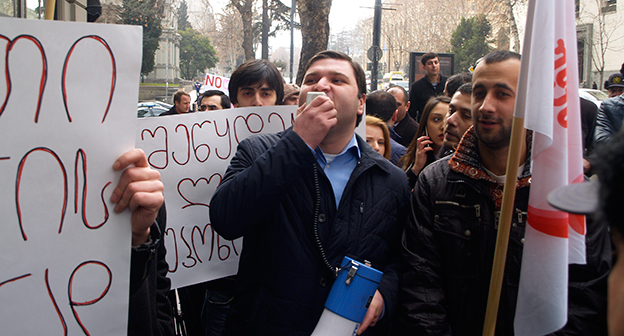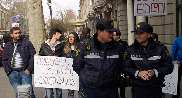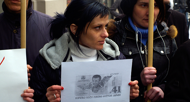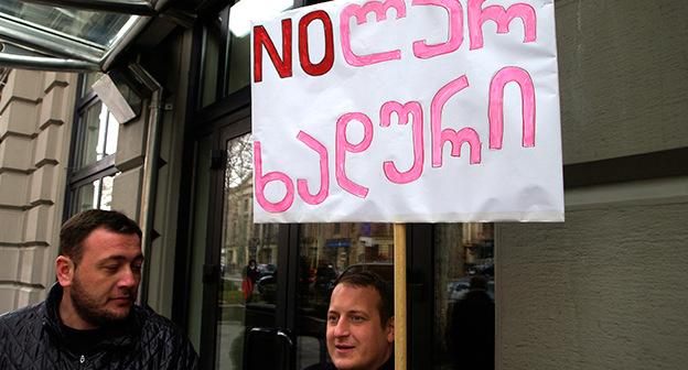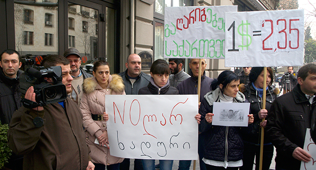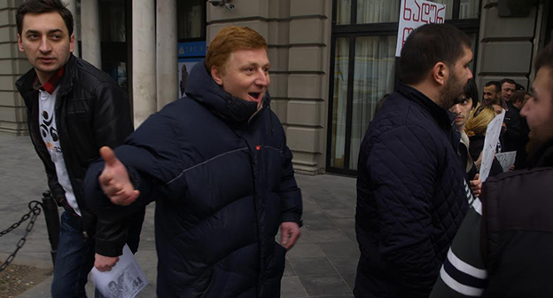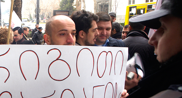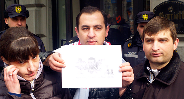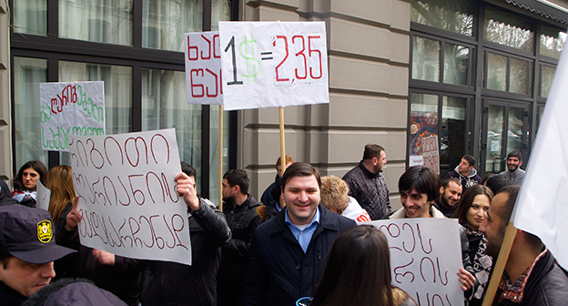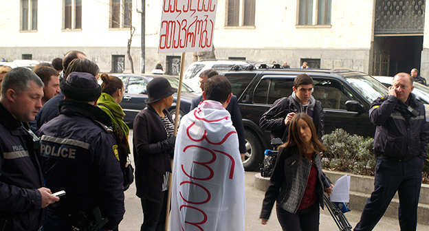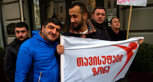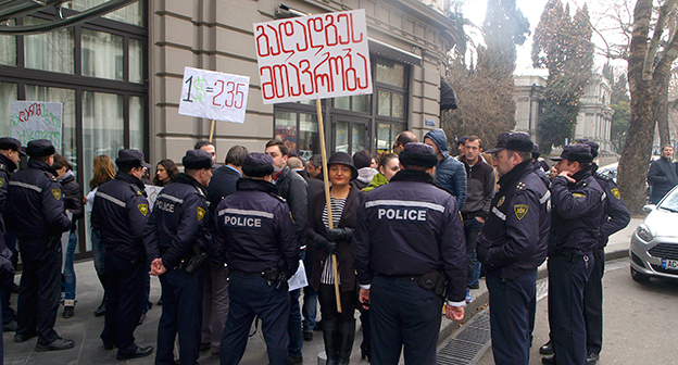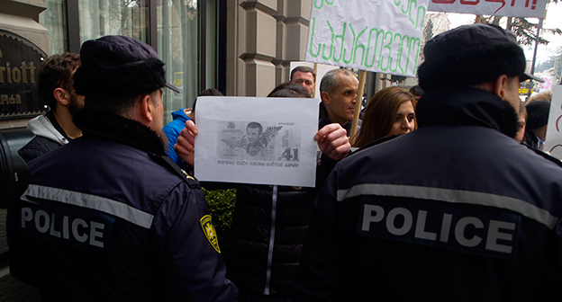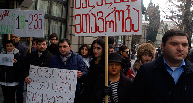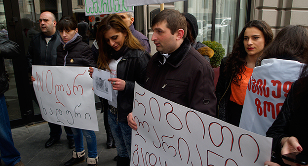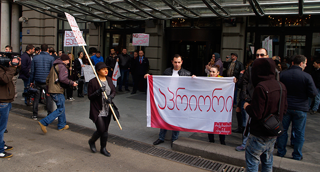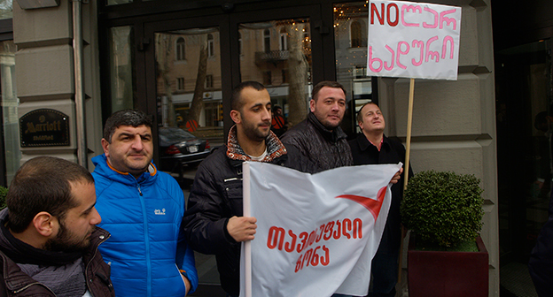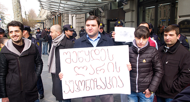 Акция протеста против министра финансов Грузии перед отелем Тбилиси-Мэриот". 25 февраля 2015 года. Фоторепортаж корреспондента "Кавказского узла" Беслана Кмузова